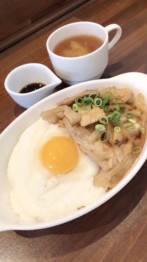 とろろとお肉でスタミナつけましょう💪✨ お味噌汁付きです!