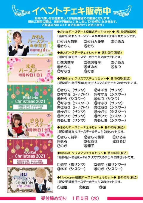 本日よりお屋敷と通販で『12月のイベントチェキ』のご予約を受付しております。