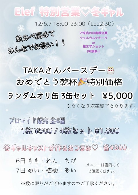 12/6,7 特別営業♡冬ギャル