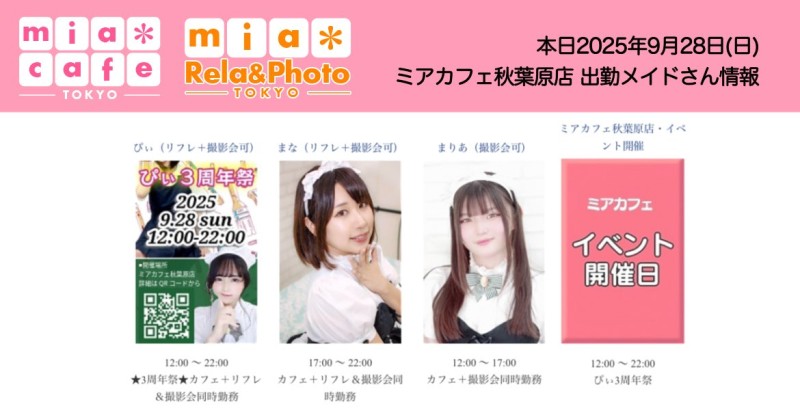 👑本日9月28日(日)のミアカフェ秋葉原店