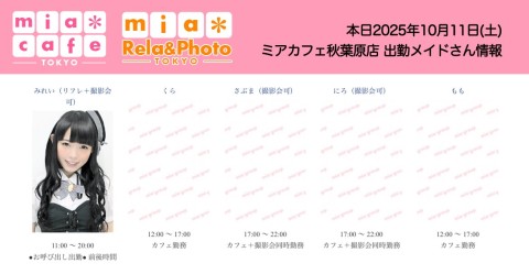 👑本日10月11日(土)のミアカフェ秋葉原店