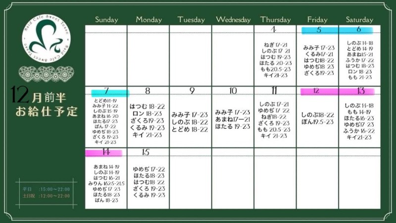 12月前半お給仕予定🗓📌
