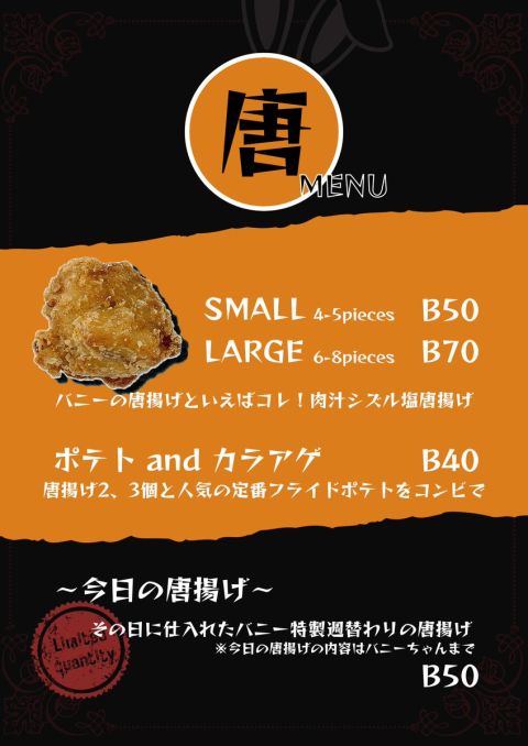 【🐰本日の営業のお知らせ🐰】 本日5月10日営業致しております💁‍♀️ 知ってる方も多くいらっしゃいますと思いますが 「唐揚げバニー」となりました🎉 今回のメニューがこちらとなります👯‍♀️ ↓↓↓↓ ちなみに今日の限定唐揚げは「軟骨の唐揚げ」です🐓 お待ちしております🐇 #中野 #バニー #バイト募集 https://t.co/2JJNflUCmq