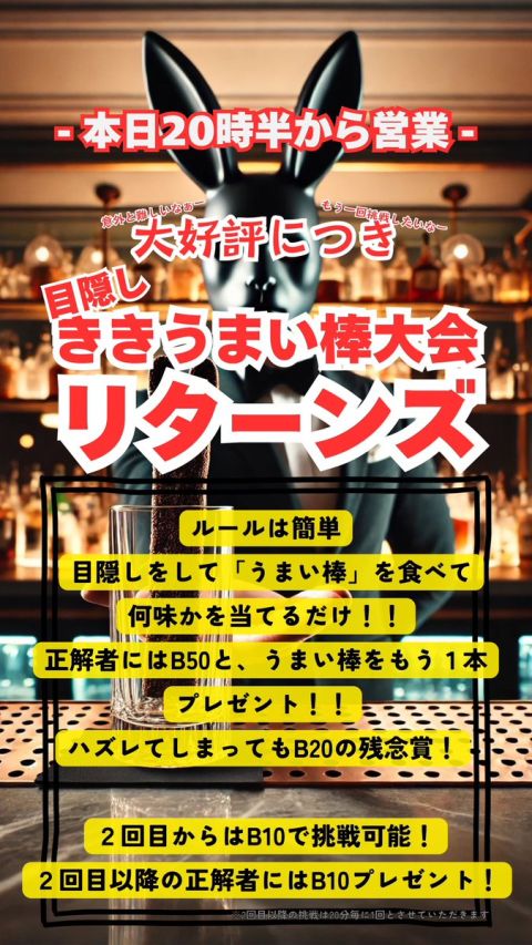 Reオープン記念として、昨日大好評だった「目隠しききうまい棒」がリターン↩️