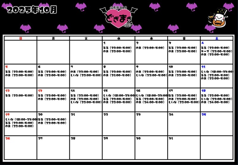 | 営業時間 | 18:00-5:00 | ||||||||||||||