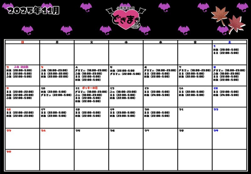 😈11月✞✟出勤予定表😈 たくさんのご来店お待ちしております🥀 『ご新規様』は割引あり💰 ❤️イベント情報❤️ 11/11はポッキーの日‼️ ➡︎ポッキー配ります🍫 💟求人募集中💟 ♡18歳以上の女性 →詳細は画像をご覧下さい👀 遠隔サイト 👉 https://t.co/SrsWwoNg7C https://t.co/QR8Oje5k2G