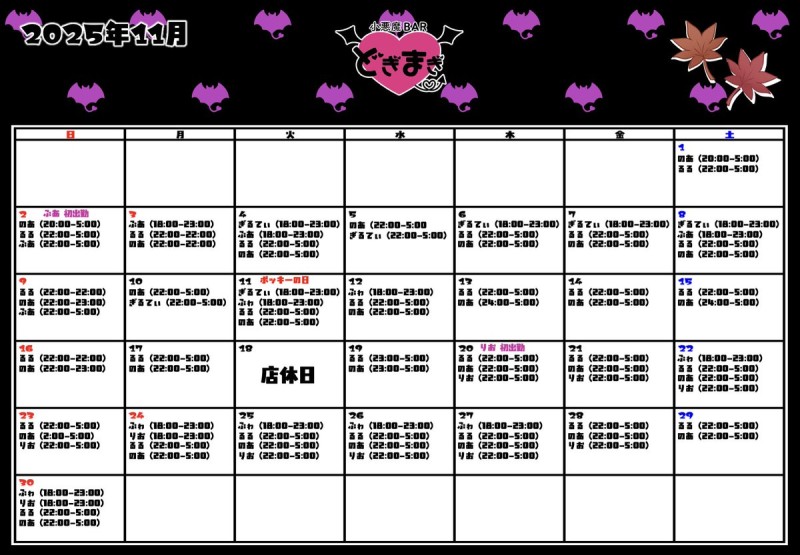 😈11月✞✟出勤予定表😈