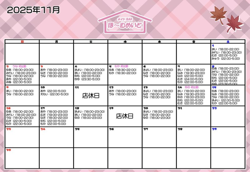 🏠11月出勤予定表🏠