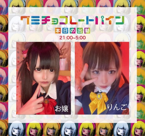 ♥️💛7/15(火)のグミチョコレートパイン💛♥️ 21-5 まい@_mqichanp まもち@knp_disk 営業再開してます🌈 人生をPOPに楽しむならグミチョコにお任せあれ🌟☝🏻 https://t.co/5p2qXfqwvV #メイドバー #コンカフェ #東心斎橋 https://t.co/yrSggDMkju