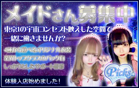 東京1の宇宙コンセプト🚀 ピックスのメイドさんを大募集✨ 🔸18歳~※23時頃まで勤務必須 🔹オリジナル制服4種類 🔸交通費全額支給(条件有) 🔹お散歩少なめ 🔶バック最大50%で保証有り👍🏻 🔹日払い🆗 🔸時給1300円~(研修1200円〜) 🔹今だけ体入有り #新宿 #歌舞伎町 #コンカフェ #求人 https://t.co/0eF56ewW1V