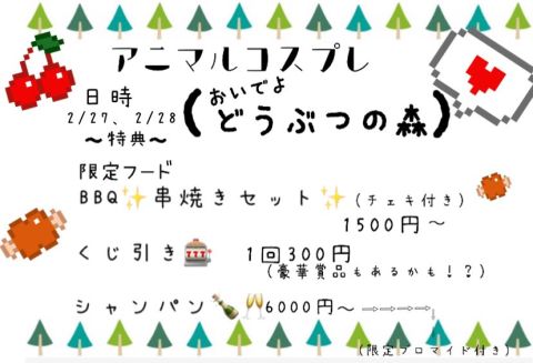 〜お知らせ〜 2/27,2/28でアニマルコスプレします!! キャストちゃんが動物になっちゃうよ☺️🌟皆様のご来店お待ちしてます💗 https://t.co/CjRZqxeA9w