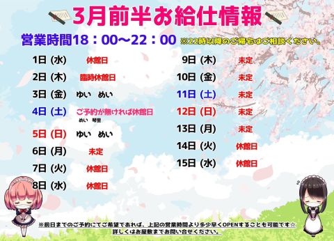 | å¶æ¥æé | æã»æšã»éã16ïŒ00ïœ22ïŒ00 åã»ç¥åæ¥ã13ïŒ00ïœ22ïŒ00 æ¥ã»ç¥æ¥ãã12ïŒ00ïœ21ïŒ00 æ¯é±ç«ã»æ°Žã¯å®äŒæ¥ã§ãã â»åæ¥ãŸã§ã®ãäºçŽããªãæ¥ã¯18ïŒ00ïœ22ïŒ00ãŸã§ã®å¶æ¥ãšãããŠããã ãå ŽåãããããŸãã â»å¶æ¥æéã¯å€æŽãšãªãå ŽåãããããŸãã®ã§ãäºæ¿ãã ãããŸãã | ||||||||||||||