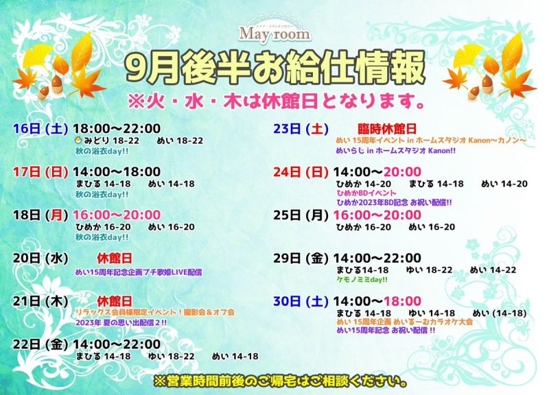 | å¶æ¥æé | æã»æšã»éã16ïŒ00ïœ22ïŒ00 åã»ç¥åæ¥ã13ïŒ00ïœ22ïŒ00 æ¥ã»ç¥æ¥ãã12ïŒ00ïœ21ïŒ00 æ¯é±ç«ã»æ°Žã¯å®äŒæ¥ã§ãã â»åæ¥ãŸã§ã®ãäºçŽããªãæ¥ã¯18ïŒ00ïœ22ïŒ00ãŸã§ã®å¶æ¥ãšãããŠããã ãå ŽåãããããŸãã â»å¶æ¥æéã¯å€æŽãšãªãå ŽåãããããŸãã®ã§ãäºæ¿ãã ãããŸãã | ||||||||||||||