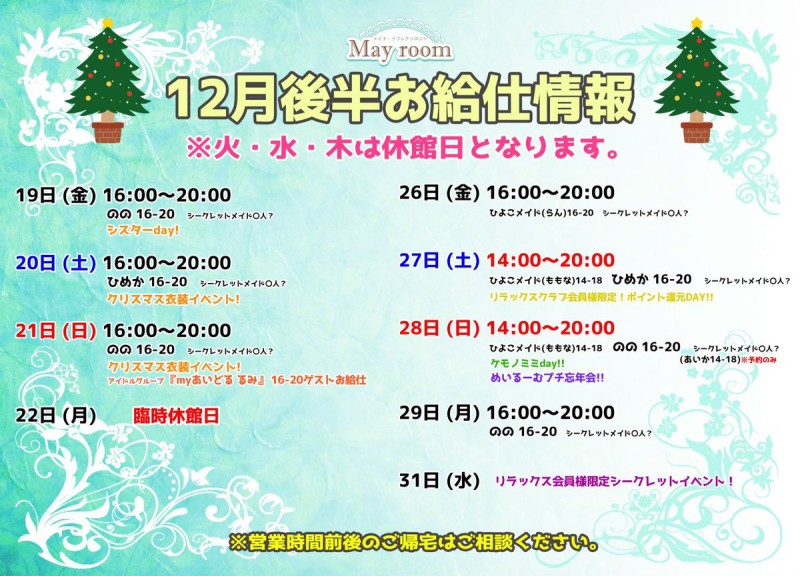 æ¬æ¥12/29ãªã¯16æïœ20æãŸã§ð°ïžã絊ä»çŽãð©µã®ã®â¡secret maidã人?