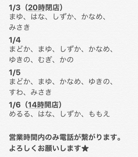 年始の出勤メンバーです。勝手ながらツイートもお休みを頂きますのでまとめてのお知らせです。