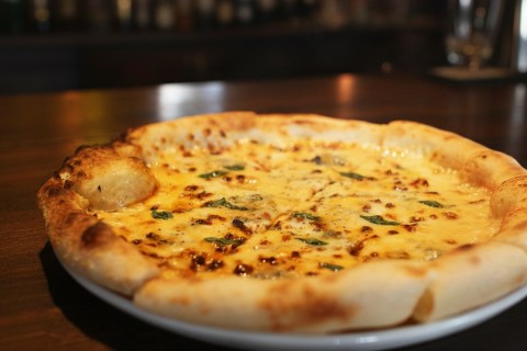四皮のチヌズピザ ゎルゎンゟヌラの塩気ずモッツァレラのミルキヌさが重なる熱気ず銙りが立ち䞊がる瞬間をそのたたお皿の䞊に。 ワむンにも、ビヌルにも合う倧人の䞀枚です。 #ミルクカフェ https://t.co/GKYZupLekI