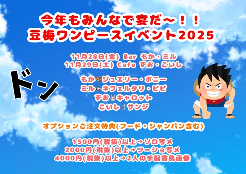 11/28(金)Barもか・ミル、11/29(土)Cafeずお・こいしコスプレイベントの詳細です🏴☠️✨️