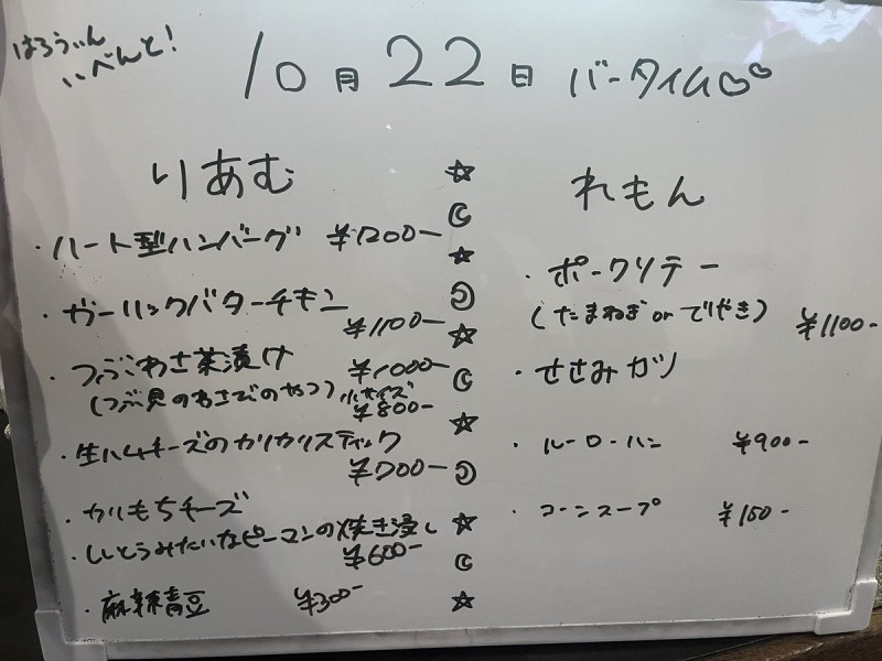 | 営業時間 | カフェタイム11:00〜17:00バータイム17:00〜22:00 | ||||||||||||||