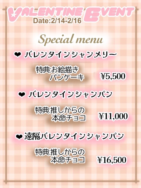 限定メニューから当日お渡しの本命チョコも受け取ってください🍫