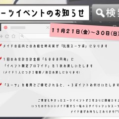本日もご帰宅ありがとうございました💗 次の営業日時は 【11月25日】【14:00~21:00】 お留守番予定メイドは 🖤まりあ 🤍こおり でございます🎵 30日まで💻スーツイベント💻が開催中です✨ スーツ姿で皆様のご帰宅をお待ちしております☺️💓 https://t.co/gFwoYfTTJY