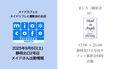 👑本日9月6日(土)のミアカフェ静岡北口2号店