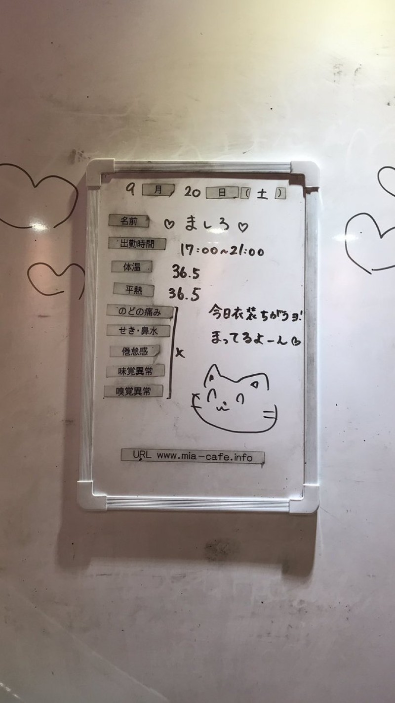 | 営業時間 | 静岡店は出勤スタッフがいれば営業です! 基本的に 12時~22時が営業時間です! ●静岡店のツイッター @shizuokamaidsan https://twitter.com/shizuokamaidsan ●ミア静岡店の営業曜日&営業時間● ☆月〜木 14:00〜22:00(最終受付20:00) ☆金曜日 12:00〜22:00(最終受付21:00) ☆土・日・祝 12:00〜22:00(最終受付21:00) 営業時間外はオンライン予約にてお願いいたします。 PC・携帯共通 → http://m-kanzume.moo.jp/yoyaku2/user.cgi ●ミアガイド出勤状況● スマホ・PC → 後日公開予定 ★静岡店スタッフによるミア甲府店でのメイドカフェリアル営業★ ☆不定期 サイトにてご確認ください。 http://market.chu.jp/schedule1/sche37.cgi | ||||||||||||||