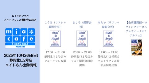 👑本日10月26日(日)のミアカフェ静岡北口2号店